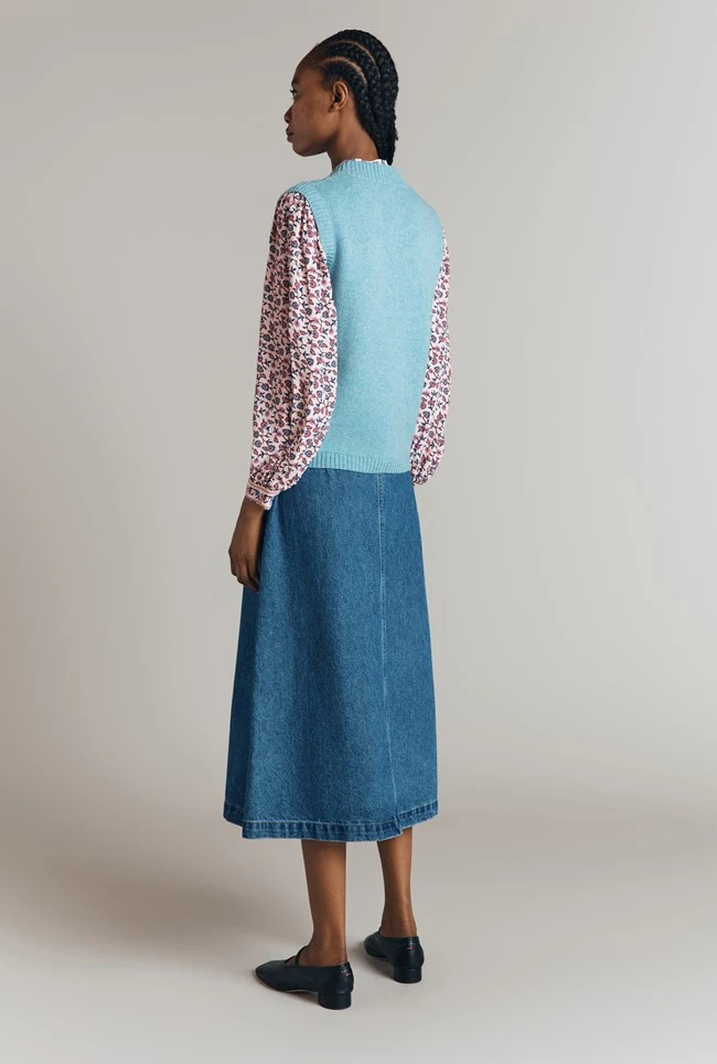 - Sleeveless knits may be trending but we’ve always appreciated their versatility. Brettia is a wool blend pointelle knit waistcoat that makes the perfect layering piece. Featuring patch pockets and horn values, simply add over shirts, T-shirts and dresses, or wear alone for an of-the-moment look this season and beyond.