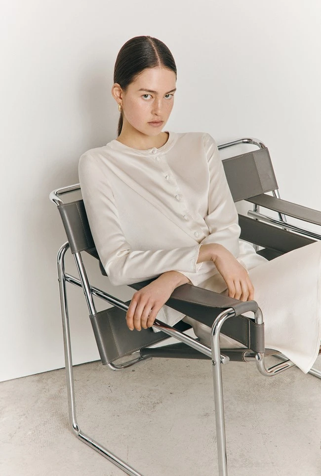 Say hello to your new go-to blouse – Efie. In a range of beautiful colours and crafted from our signature satin, Efie features simple straight sleeves, a round neckline to frame the face and front button detail. Pair with out Ella Trousers for the complete look.