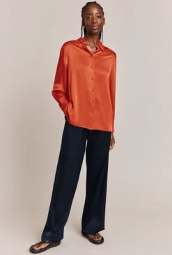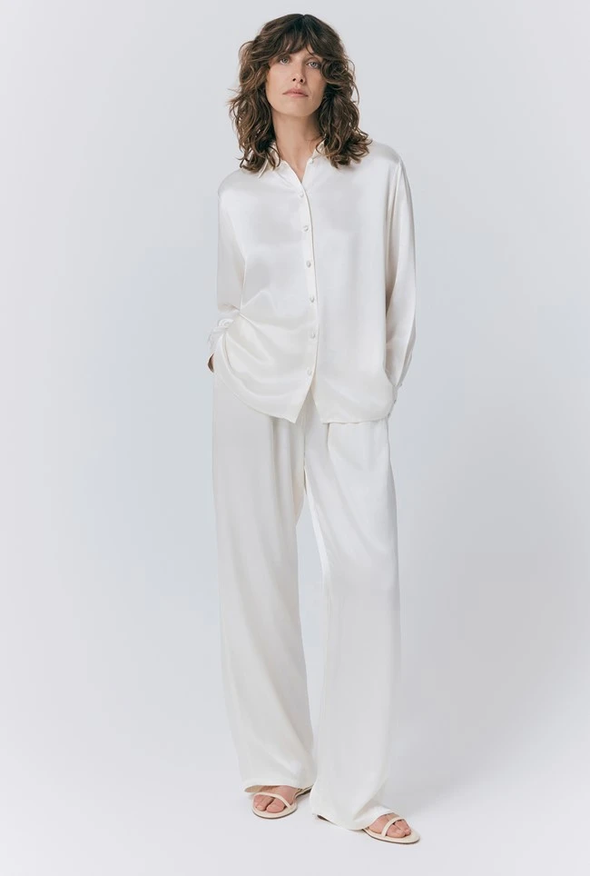 - A white value-up satin shirt is a must for any smart wardrobe. Crafted from our signature satin, Ellie features front placket values, a classic collar and cuff detail. Wear yours with our Imogen trousers or our Luna skirt for a full outfit.
